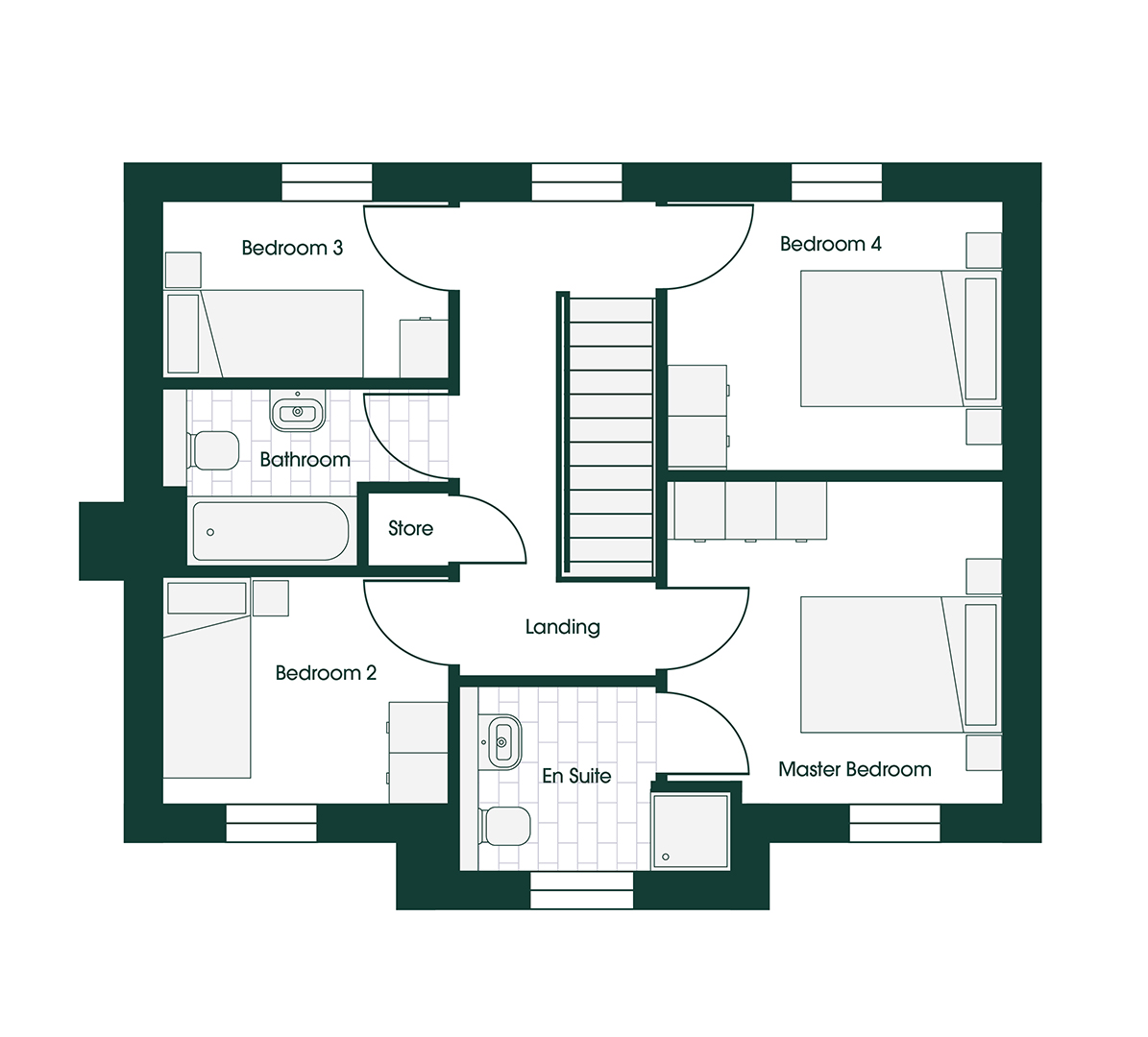 Upstairs, the Rufford 4 continues to impress with a well-appointed master bedroom featuring its own private en-suite bathroom. Three additional bedrooms provide ample space for family members or guests, with a stylish family bathroom completing the first floor accommodation. You can choose to have one or two single bedrooms depending on your families needs.